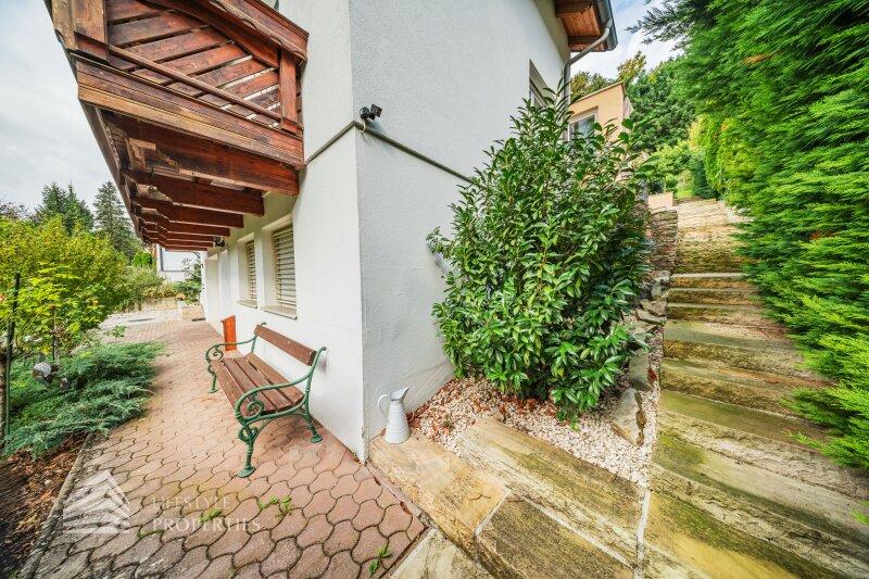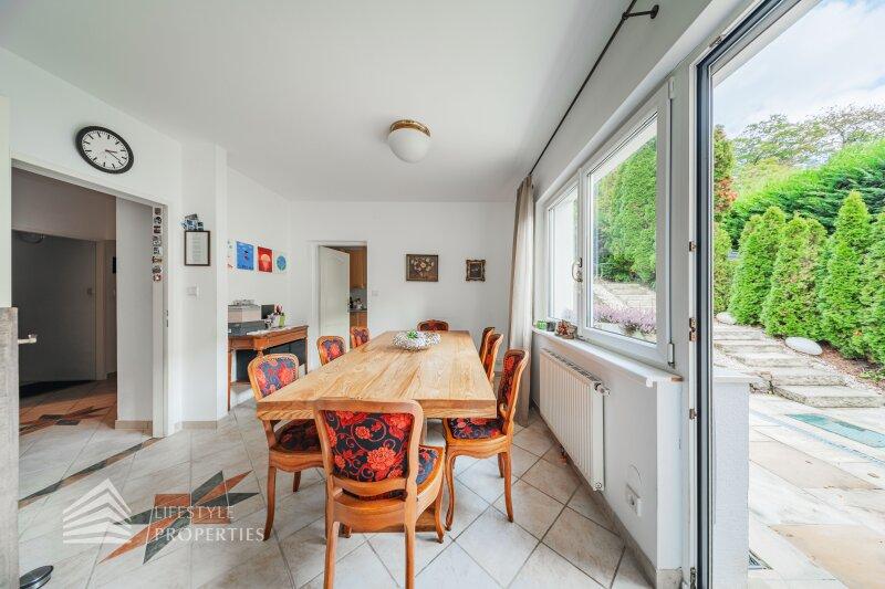 Das Anwesen bietet mehrere Terrassen und einen Balkon, verteilt auf Erd- und Obergeschoss, sowie insgesamt ca. 4 Stellplätze in der Garage. Die ruhige Lage am Waldrand des 14. Bezirks von Penzing garantiert absolute Privatsphäre und gleichzeitig kurze Wege in die Stadt. Einkaufsmöglichkeiten, Schulen, Kindergärten und Restaurants sind in wenigen Minuten erreichbar, während die Nähe zum Wienerwald vielfältige Freizeitmöglichkeiten eröffnet.