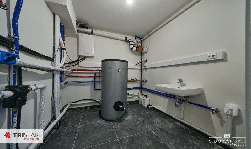 So gibt es einen vollwertigen Keller, nicht nur für den Technikraum mit Warmwasserspeicher (+ Platz für Wechselrichter und Batterie für die Photovoltaikanlage), sondern auch für einen Hobbyraum (Fitness, Werkstatt, Atelier...), der angenehm mit Fußbodenheizung beheizt wird.
