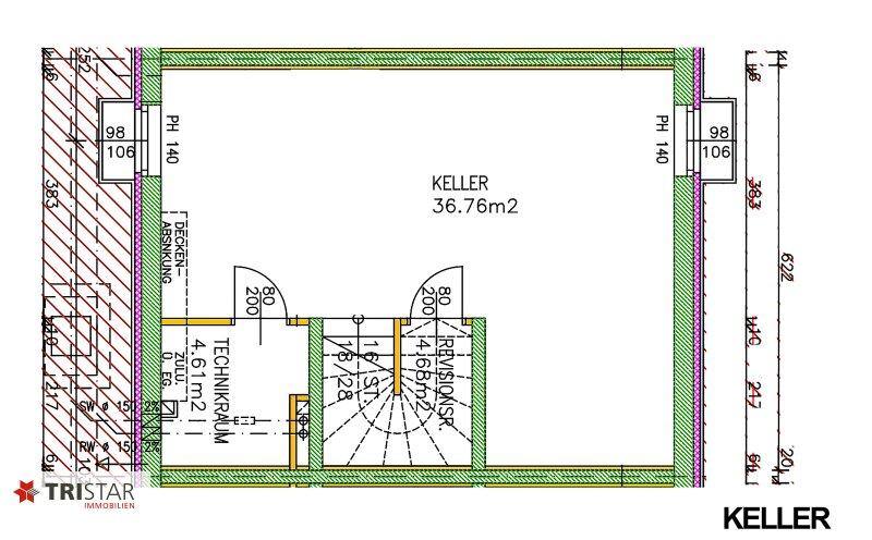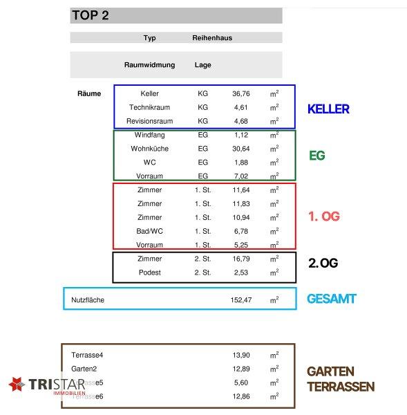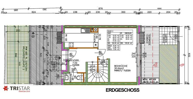 WNFL.: ca. 152,50 m² (inkludiert KELLER ca. 46,05 m²) + Terrassen und Garten: ca. 45,25 m² + PKW Stellplatz ca.14,20 m² = KAUFPREIS EUR 599.000, Schlüsselfertig!