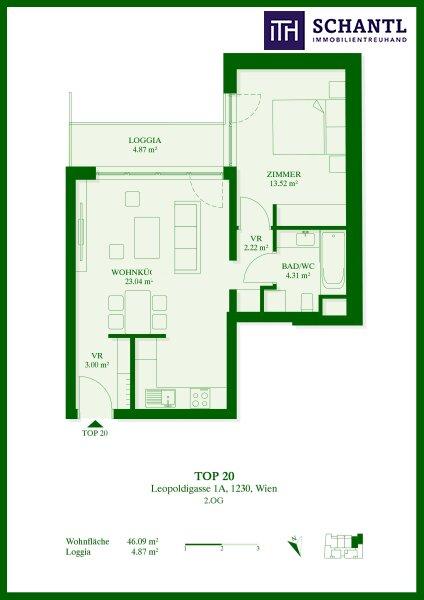 Wohnfläche: ca. 46,09m² + Loggia: ca. 4,87m²