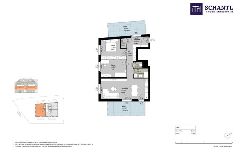 Wohnfläche: ca. 80,34m² + 1.Balkon: ca. 15,94m² + 2.Balkon: ca. 15,99m² + Kellerabteil