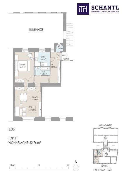 Ihre neue Wohnung in kompletter Hof-Ruhelage wird Sie begeistern und teilt sich in einen geräumigen Vorraum mit Platz für eine Garderobe, ein separates WC mit Fenster und Handwaschbecken, ein Badezimmer mit Badewanne und Waschmaschinenanschluss, eine separate Küche mit Fenster in den Innenhof, ein kuscheliges und super ruhiges Schlafzimmer sowie ein großes Wohn-Esszimmer mit Blick ins Grüne!