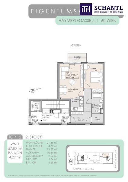 Wohnfläche: ca. 57,8m² + Terrasse: ca. 4,29m² + Kellerabteil + Garagenabteil optional