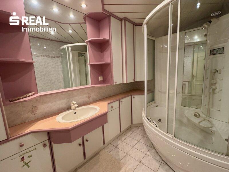 Das Badezimmer ist mit einer großen Dusche ausgestattet, im Abstellraum befindet sich der Waschmaschinenanschluss.