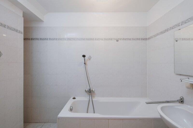 • großzügiges Badezimmer mit Badewanne, Waschbecken sowie Waschmaschinenanschluss