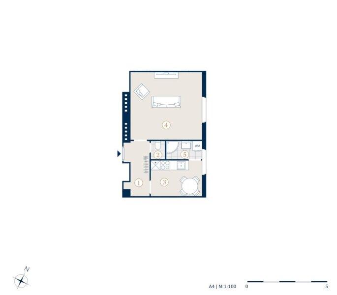 Die Wohnung gliedert sich in einen Vorraum, einen Wohn- Schlafraum, eine Küche, ein Badezimmer und ein separates WC.