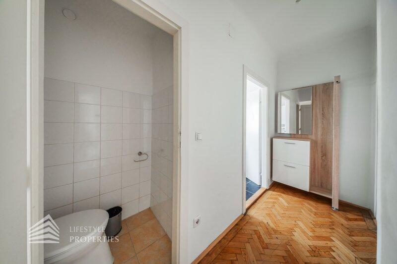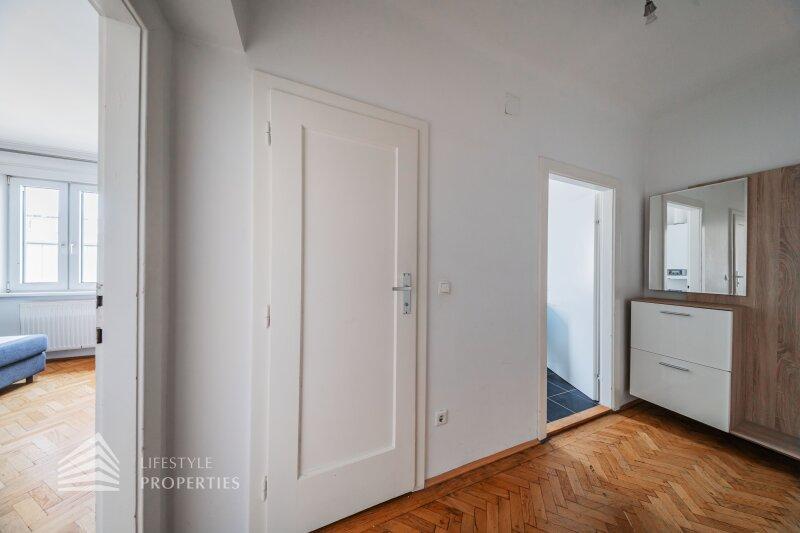 Sie befindet verfügt über ca. 35 m² und befindet sich im 4.Stock eines im Jahr 1936 erbauten Altbaus, welcher zwei Stiegen mit insgesamt 28 Wohneinheiten umfasst.
