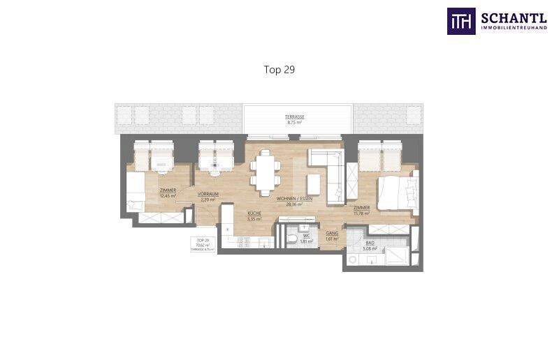 Wohnfläche: ca. 70,62 m² + Terrasse: ca. 8,75 m²