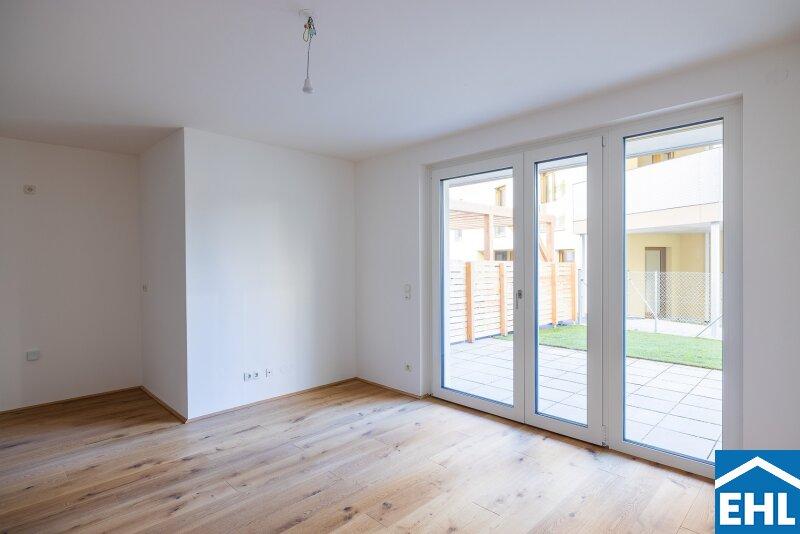 • offene Wohn-Ess-Bereiche mit Zugang zu Balkon, Terrasse oder Eigengarten