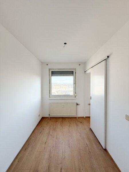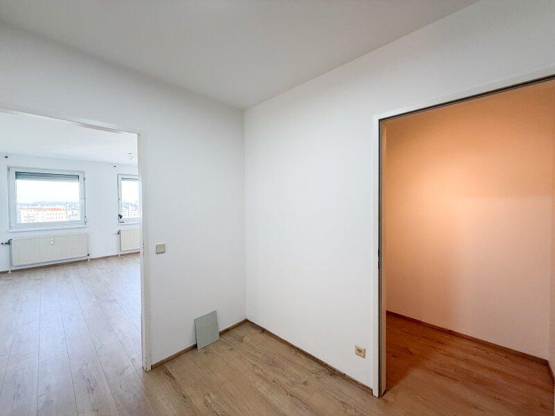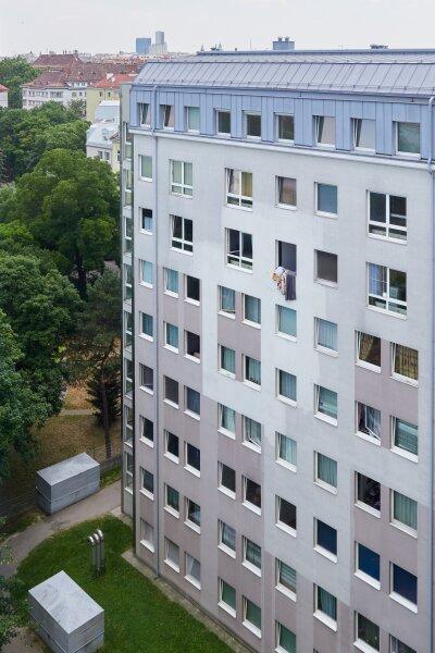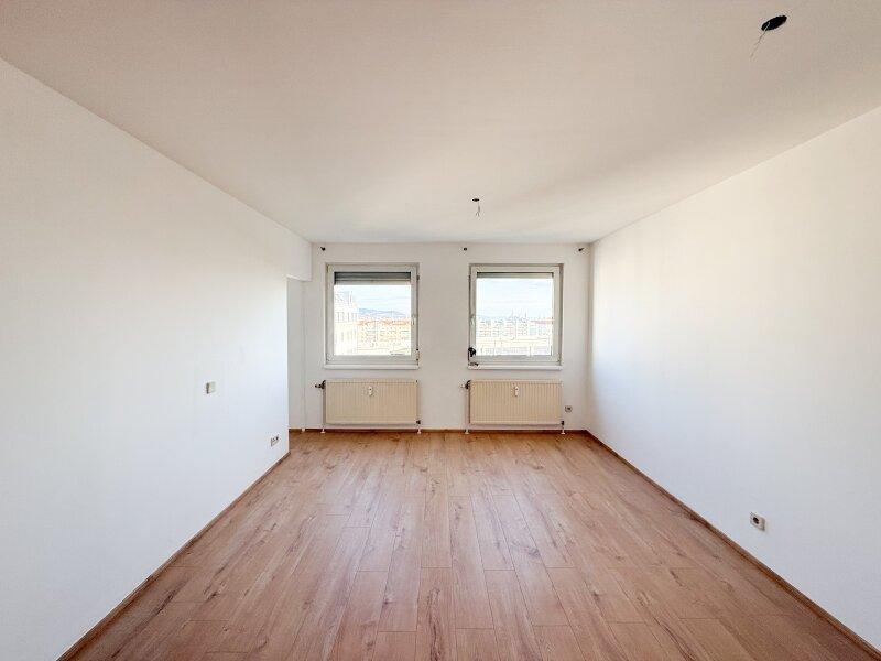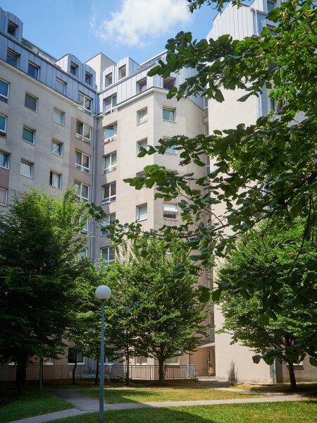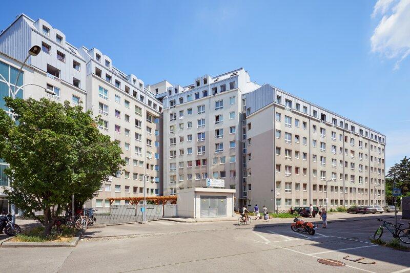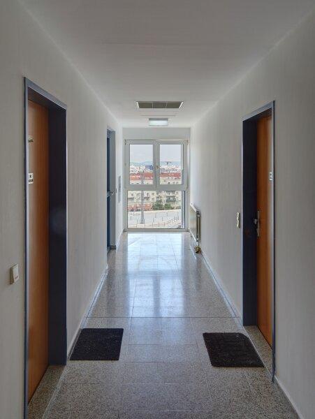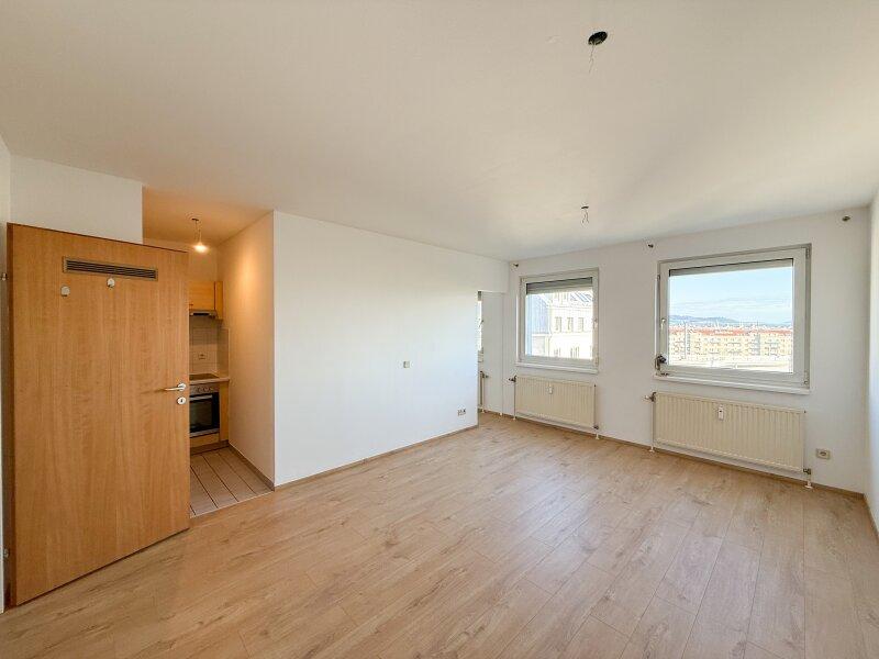 Die Wohnung liegt im 8. Obergeschoß eines 1993 errichteten Mehrfamilienhaus mit glatter Fassade und Personenaufzug. Die ca. 42 m² große 1-Zimmer-Wohnung, verfügt über einen Vorraum, ein Wohn-Schlafraum mit Küchennische und einer Einbauküche welche mit modernen Geräten ausgestattet ist, einem Bad mit Badewanne und Toilette, sowie einem Abstellraum.