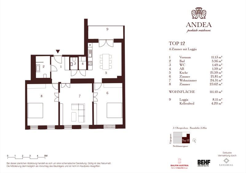 Lassen Sie sich von dieser beeindruckenden Vier-Zimmer-Einheit mit Loggia begeistern, die sich über ca. 111 m² erstreckt und eine großzügige Raumhöhe von über 3 Metern bietet. Diese elegante Wohnung im dritten Obergeschoss des Projekts ANDEA - Parkside Residences lässt den klassischen Wiener Altbaucharme wieder aufleben und verpasst einem Rohdiamanten einen exzellenten Schliff mit state-of-the-art Annehmlichkeiten. Ein Refugium für anspruchsvolle Bewohner, die städtischen Luxus und historisches Flair suchen.
