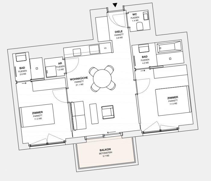 The MOLLARD 50 project presents itself as a modern new-build with three building sections and an underground garage. The architecture impresses with clean lines and thoughtful details, while the floor plans are designed with maximum flexibility and intelligent layouts. Generous balconies, loggias, terraces, and garden spaces extend the living areas of almost every apartment outdoors, creating a special quality of life.
