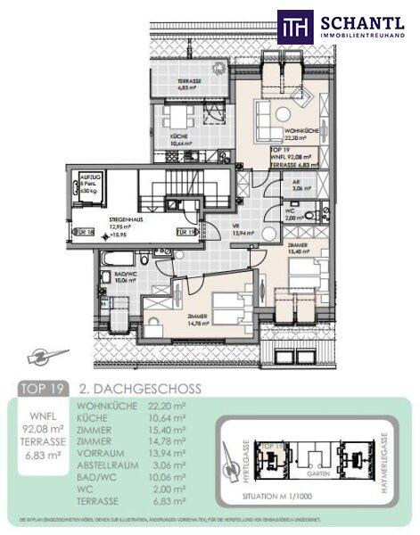 Wohnfläche: ca. 92,08m² + Terrasse: ca. 6,83m² + Kellerabteil + Garagenabteil optional