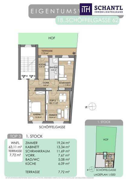 + TOP 3: 1.Stock / Wohnfläche ca. 63,11m² / Terrasse ca. 7,72m² / € 490.000.-