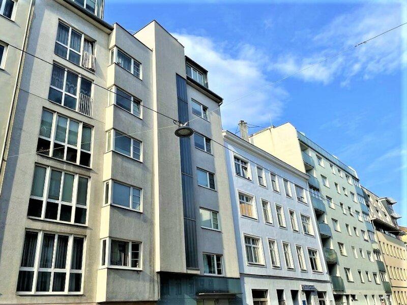 BUCHENGASSE, U1-NÄHE, 57 m2 Neubau mit 10 m2 Terrasse, 2 Zimmer, Komplettküche, Wannenbad, Parketten, 1. Liftstock