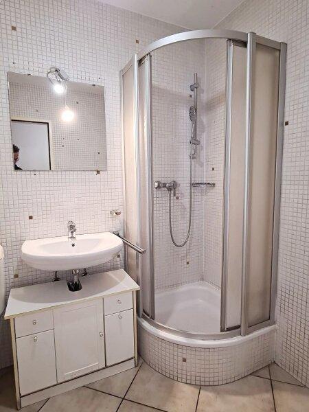 + Badezimmer mit Dusche, Waschtisch und WC