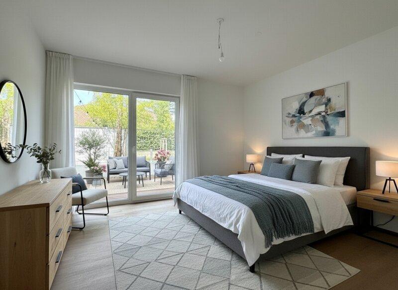 Bei der gegenständlichen Wohnung handelt es sich um eine perfekt geschnittene Dreizimmerwohnung mit Garten und Terrasse im Erdgeschoss eines sehr geschmackvollen Neubauhauses (Fertigstellung November 2025) in Grün-Ruhelage.