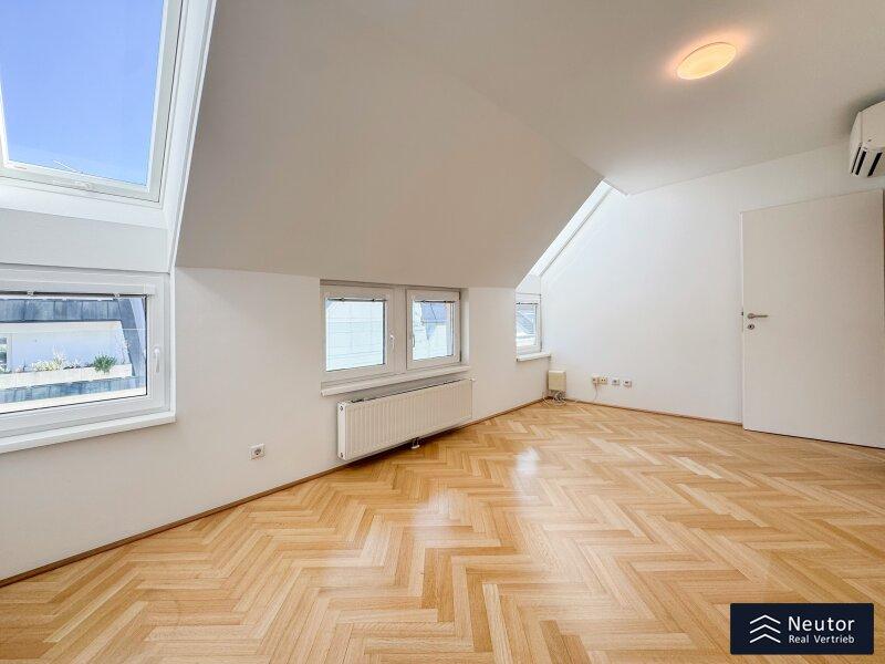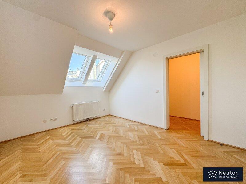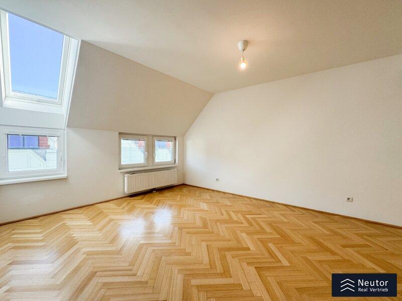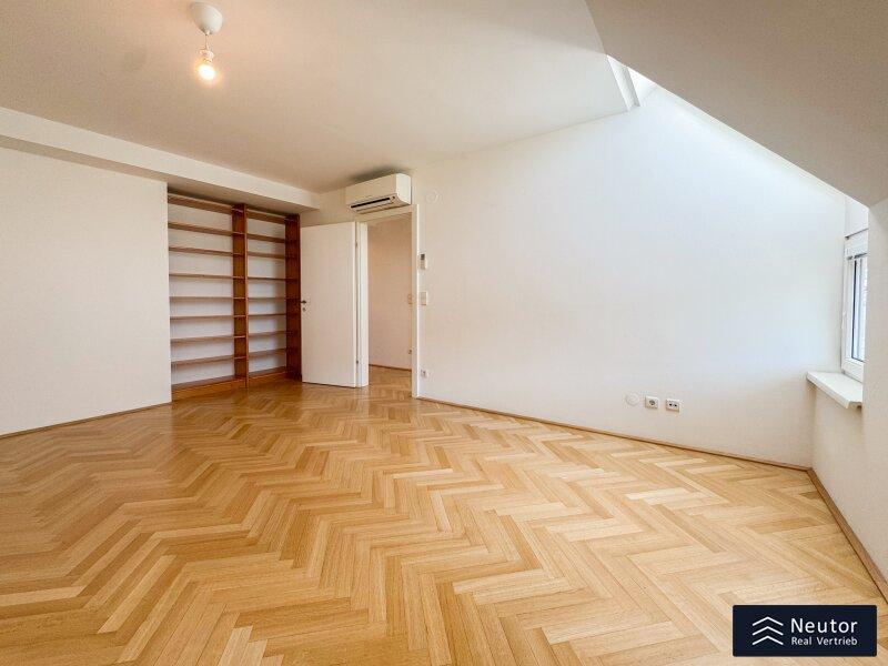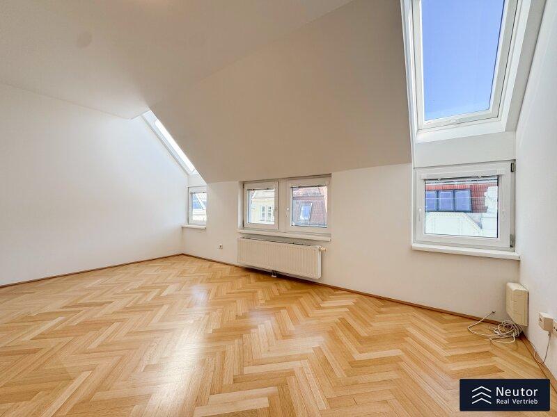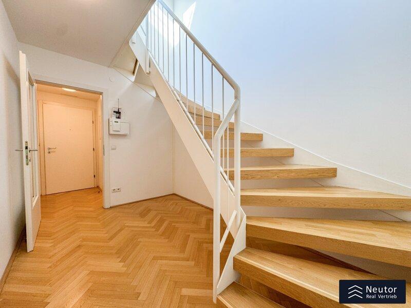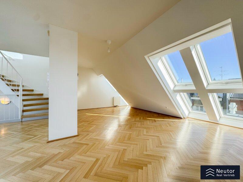 Schon beim Betreten dieser exklusiven Dachgeschosswohnung spürt man ihre besondere Atmosphäre: vier großzügige Zimmer, eine durchdachte Raumaufteilung über mehrere Ebenen und der unverwechselbare Wiener Charme verbinden sich hier zu einem außergewöhnlichen Wohnensemble. Der einladende Vorraum schafft einen harmonischen Empfangsbereich und verfügt zusätzlich über ein separates WC, was Praktikabilität und Komfort im Alltag gewährleistet. Die Wohnung ist mit einer Alarmanlage ausgestattet, die auf Wunsch wieder aktiviert werden kann und so zusätzliche Sicherheit bietet.