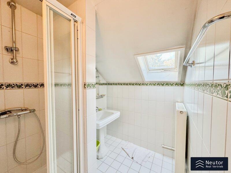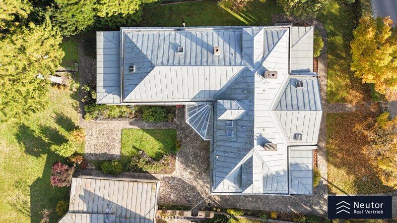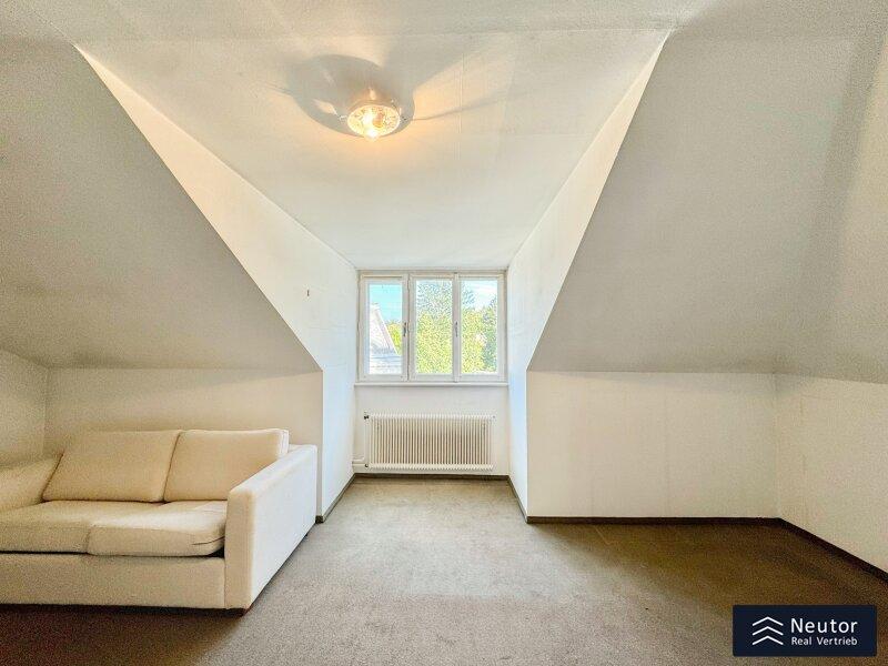 Im nachträglich ausgebauten Dachgeschoss befinden sich drei vollwertige Schlafzimmer, ein Badezimmer mit Dusche sowie ein zusätzlicher, noch nicht ausgebauter Raum. Das Blechdach der Villa befindet sich in gutem Zustand; einzelne Fenster im Dachgeschoss und auf der Wetterseite bedürfen einer Sanierung.