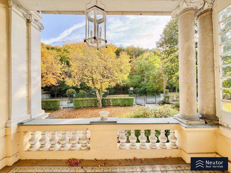 Die Immobilie präsentiert sich elegant und dezent von der Straße aus, während sich dahinter ein Refugium der Ruhe und Privatsphäre eröffnet. Zwei Parkplätze vor dem Haus sowie ein vollständig verglaster Eingangsbereich führen Sie in die Villa. Zeitlos, mit Bedacht gepflegt, erwartet Sie hier ein wahres Schmuckstück aus dem Jahr 1899.