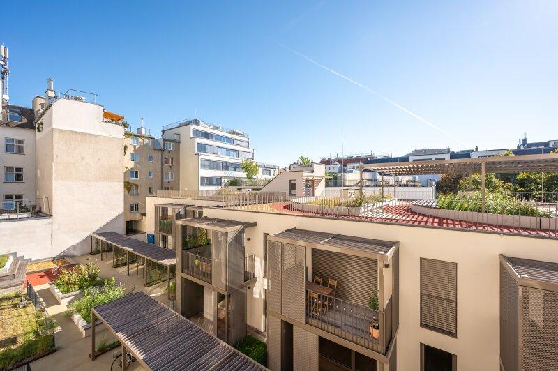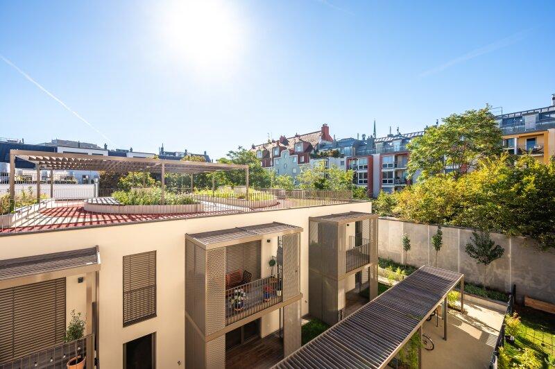 Das Haus selbst verfügt neben Waschküche, Fahrradabstellraum, großzügigen Fahrrardstehern im Freien, Kinderwagenraum, Postboxen und nachhaltigen Grünanlagengestaltungkonzept auch über eine eigene Laufbahn/Gemeinschaftsterrasse am Dach des Hofgebäudes. Darüber hinaus stehen in der hauseigenen Tiefgarage PKW als auch Motorradstellplätze zur Verfügung (gegen Aufpreis).