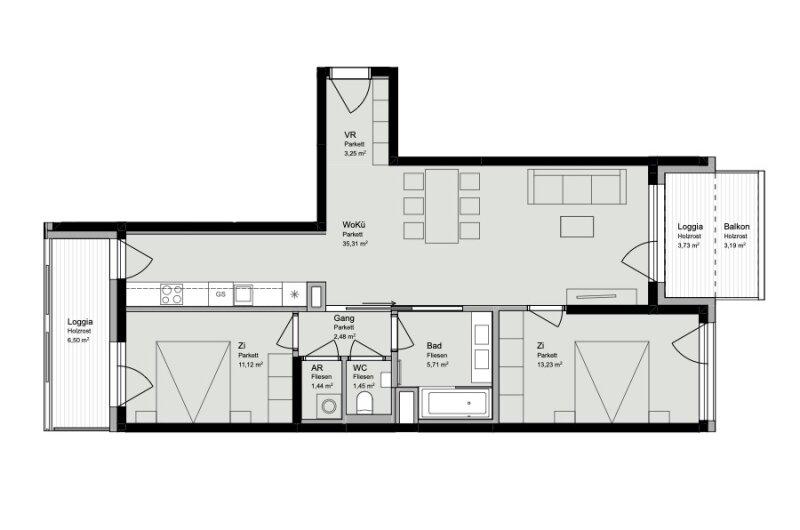 Jede Wohnung ist nicht nur mit einer Freifläche ausgestattet, sondern weißt auch hochwertige Materialien als auch Ausstattung aus: