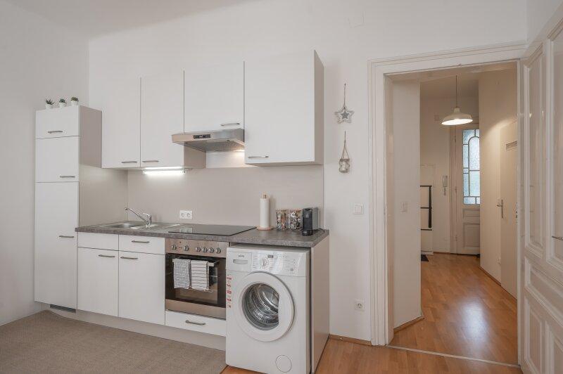 Das Haus ist ein klassischer Wiener Altbau mit gepflegter Fassade und einem modernen Lift. Die Wohnung bietet trotz ihrer kompakten Größe ein angenehmes Raumgefühl und eignet sich ideal als Starterwohnung, Anlageobjekt oder für Pendler.