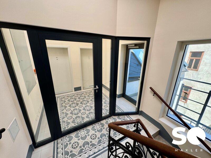 Zum Verkauf gelangt ein Erstbezug, eine topsanierte 2-Zimmer-Wohnung mit 2 Terrassen im Dachgeschoss eines Altbaus, wenige Minuten zu Fuß entfernt von der nächsten U3-Station. Die Liegenschaft verfügt über einen Personenlift.