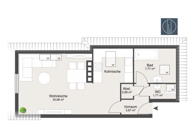 44,55 m² - 2.0 Zimmer