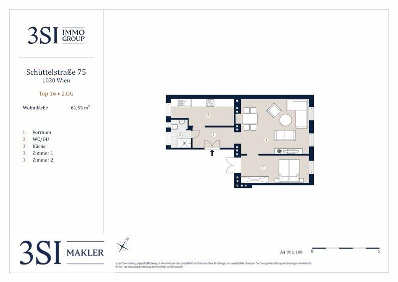 2-Zimmer-Wohnung in ruhiger Innenhoflage am Donaukanal - Objektnr. 5573625