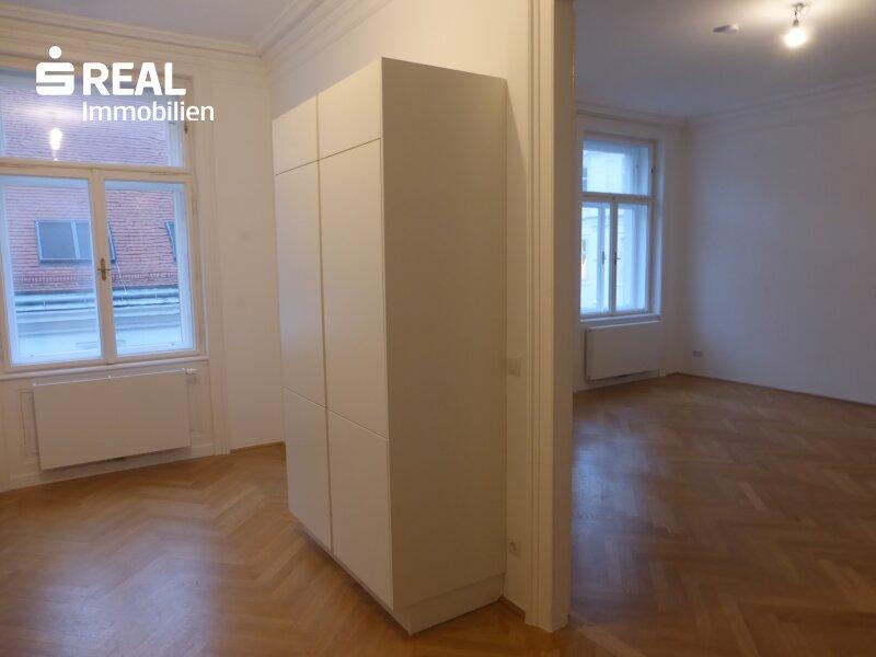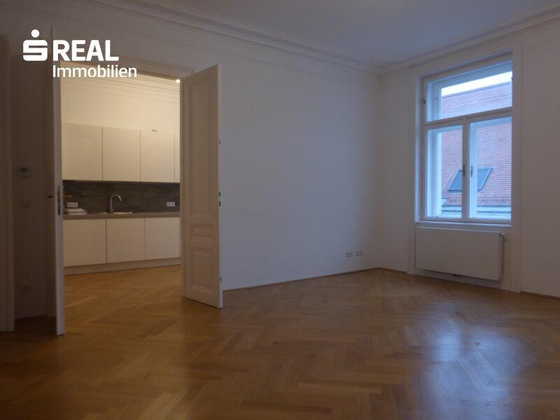 Sie suchen eine sanierte Altbauwohnung, die Moderne und Tradition perfekt verbindet Dann sehen Sie sich diese Wohnung im 4. Liftstock (= 3. Stock über Mezzanin) am Fleischmarkt an.