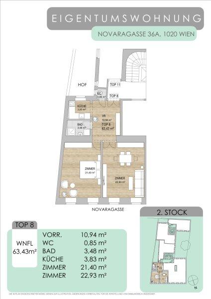 Zum Verkauf gelangt eine außergewöhnlich gut geschnittene 2-Zimmer-Altbauwohnung mit ca. 63 m² Wohnfläche, gelegen in der ruhigen Novaragasse einer charmanten Einbahnstraße im Herzen des 2. Bezirks, zwischen U1 Nestroyplatz, Praterstern und U2 Taborstraße.