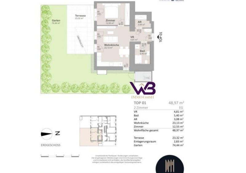 Top 1/EG ca. 49 m2 Wohnfläche, ca. 101 m2 Freifläche mit Garten und Terrasse