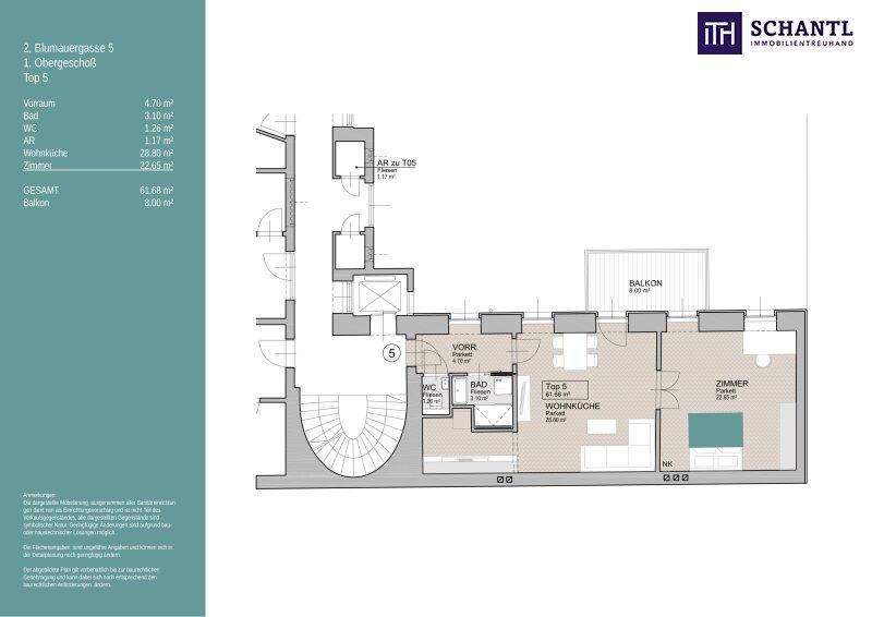 Diese charmante 2-Zimmer-Wohnung in der Blumauergasse bietet Ihnen alles, was Sie sich für ein modernes und komfortables Leben wünschen. Mit einer großzügigen Fläche von ca. 62 m² und einem attraktiven Kaufpreis von 399.000,00 € ist dieses Angebot nicht nur eine Investition in Immobilien, sondern auch in Ihre Lebensqualität.