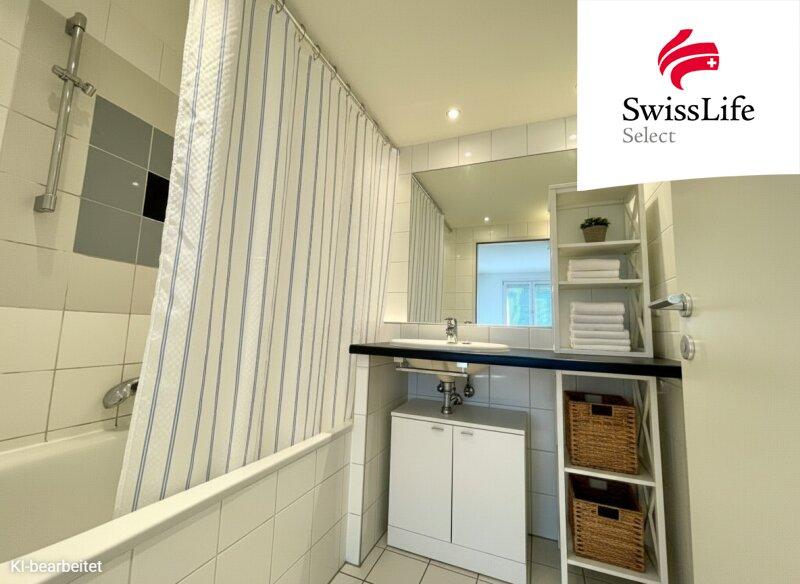 Einer der Räume verfügt über eine praktische Schrankraum-Nische. Das Badezimmer ist mit Badewanne und Waschtisch ausgestattet, was den Wohnwert steigert und auch für Einzelmieter attraktiv ist. Da es im Haus ein Waschküche gibt müsste man nicht mal eine Waschwaschmaschine zu Verfügung stellen!