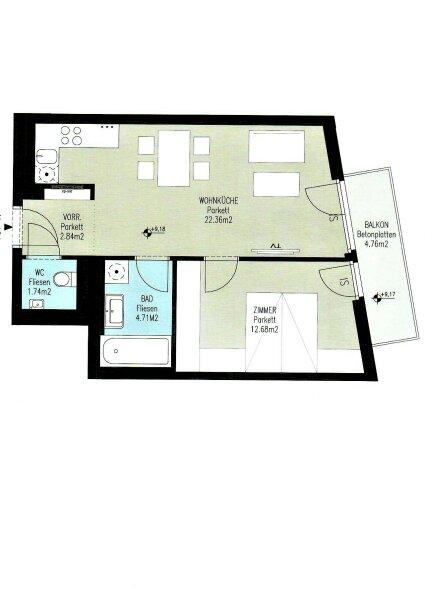 PLANETENGASSE, 44 m2 Neubau mit 5 m2 Balkon, 2 Zimmer, Kochnische, Wannenbad, Parketten, Hauptbahnhof-Nähe