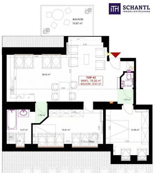 Wohnfläche 78,26 m² + 10,67 m² Balkon