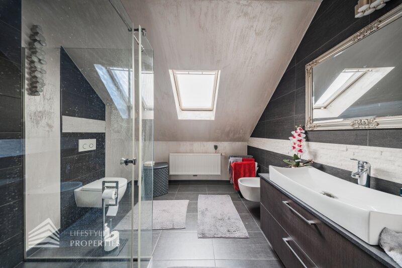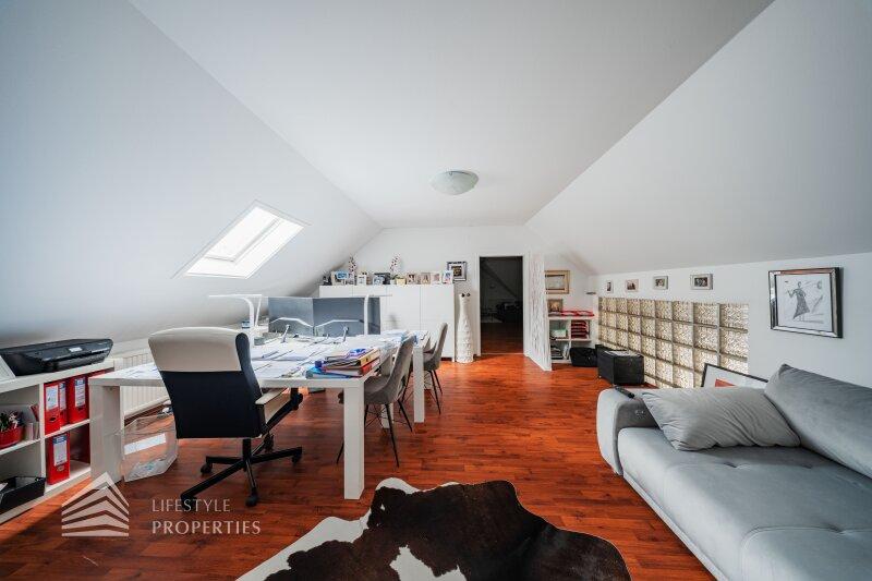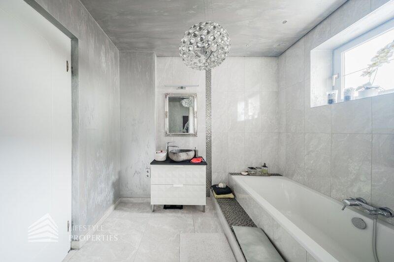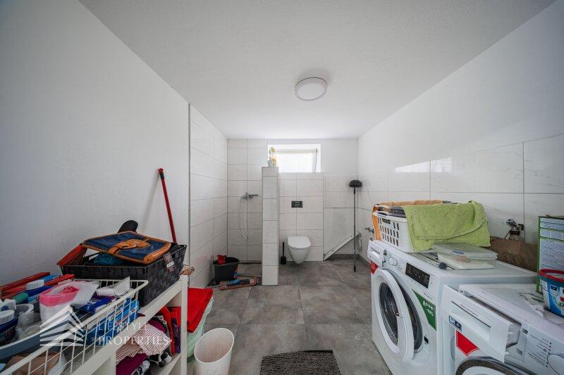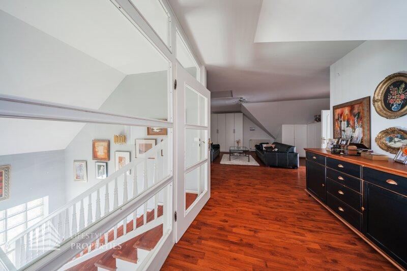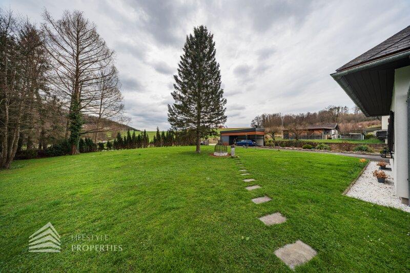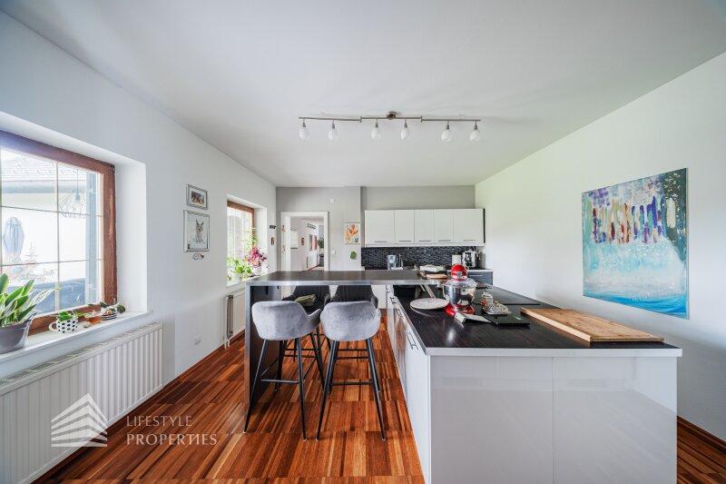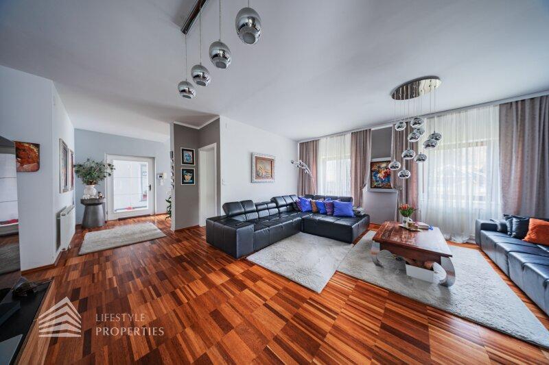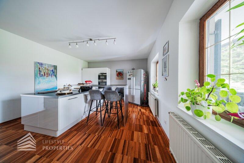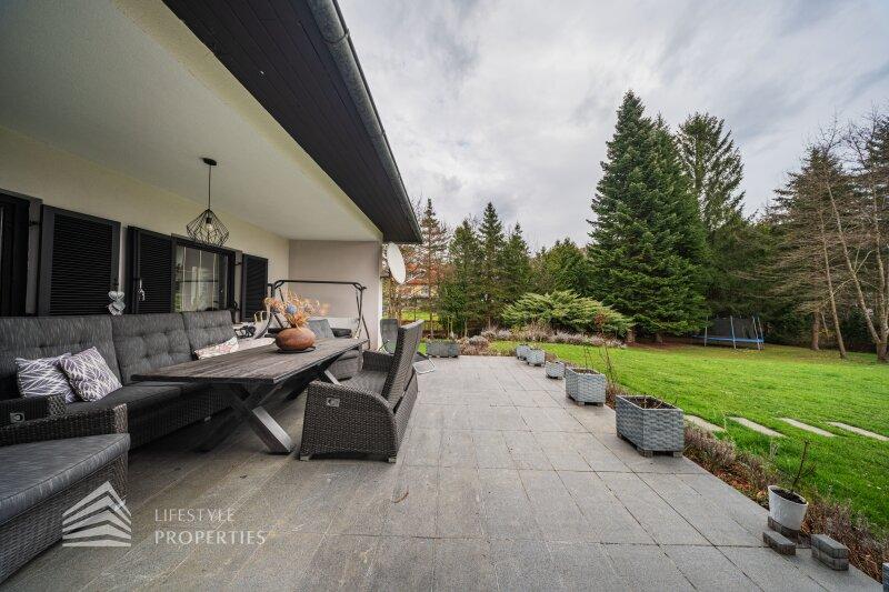Zum Verkauf gelangt eine wunderschöne Luxus-Landhaus-Villa in ruhiger Lage in Thal bei Graz. Das Haus wurde im Jahr 1976 auf einem großflächigen ca. 2.470 m² großen Grundstück erbaut und im Jahr 2022 mit viel Sorgfalt und hochwertigen Materialien umfassend renoviert. Mit einer großzügigen Gesamtnutzfläche von etwa 439 m² bietet diese Villa ausreichend Platz für eine große Familie sowie komfortables Wohnen mit Stil und Qualität. Die Ausstattung des Hauses lässt keine Wünsche offen. Die Böden in den Wohnräumen sind mit edlem Parkett ausgelegt, während die Nassräume und der Keller mit geschmackvollen Fliesen versehen sind. Beheizt wird das Objekt mittels Ölheizung. Ein weiteres Highlight ist der eigene Wasserbrunnen, der Unabhängigkeit und zusätzliche Versorgungssicherheit bietet.