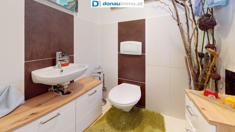 Dieses gepflegte Einfamilienhaus in Toplage von Eidenberg vereint modernes Wohnen, Energieeffizienz und hohen Wohnkomfort. Das Niedrigenergiehaus wurde 2007 in Holzriegel, das Kellergeschoß in Beton/Ziegel Bauweise errichtet und bietet mit einer Wohnnutzfläche von rund 158 m² genügend Platz für Familien, die Wert auf Qualität und Nachhaltigkeit legen. Im großzügigen Wohn- und Essbereich sorgt der Kamin für behagliche Atmosphäre, während die hochwertige Einbauküche keine Wünsche offenlässt. Große Fensterflächen durchfluten die Räume mit Tageslicht und eröffnen den Blick ins Grüne. Im Obergeschoss befinden sich mehrere helle Schlafzimmer und ein modern ausgestattetes Badezimmer mit eleganten Badezimmermöbeln. Eine kontrollierte Wohnraumlüftung sowie die Wärmepumpe sorgen ganzjährig für ein angenehmes Raumklima. Der liebevoll gestaltete Garten mit Terrasse lädt zum Entspannen und Genießen ein ideal für gemütliche Stunden im Freien. Eine Garage sowie eine Photovoltaikanlage runden das Angebot ab und bieten zusätzlichen Komfort sowie niedrige Betriebskosten.
