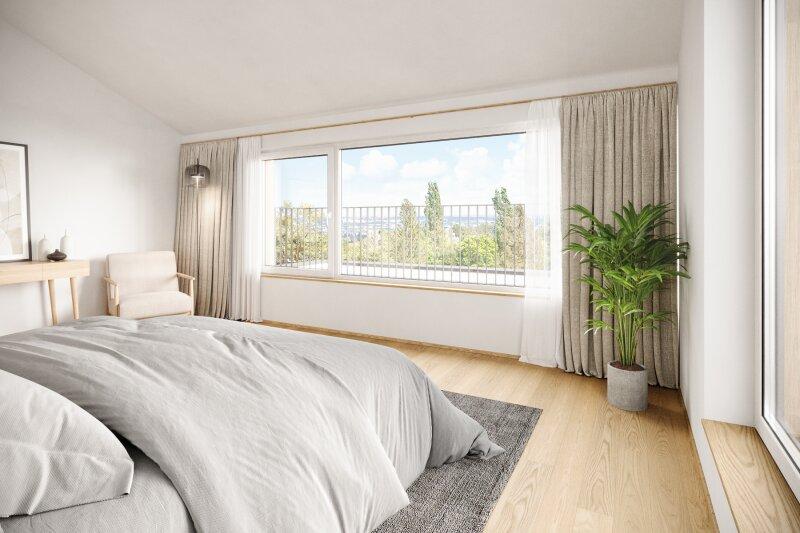 Die Umgebung ist geprägt von gepflegten Grünflächen, Wiesen und einem sanft geneigten Hang, der ein besonders angenehmes Wohngefühl vermittelt. Die erhöhte Position garantiert freie Panoramaaussichten insbesondere auf das Stadtbild Wiens und bietet damit einen besonderen Mehrwert für Ihr zukünftiges Zuhause.