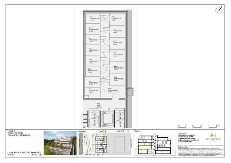 Es werden insgesamt 34 Garagenplätze, 8 überdachte Außenstellplätze sowie 2 Motorradstellplätze errichtet, die gesondert erworben werden können. Der Kaufpreis je Garagenplatz beträgt EUR 19.990, je überdachter Außenstellplatz EUR 14.990 und je Motorradstellplatz EUR 5.000.
