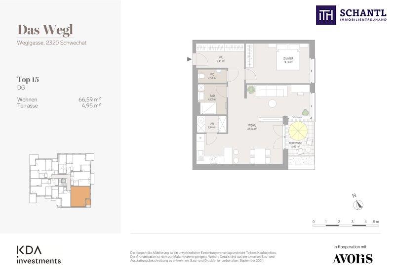 Wohnfläche: ca. 66,66 m² + Terrasse: ca. 4,95 m² + Kellerabteil: ca. 2,30 m²
