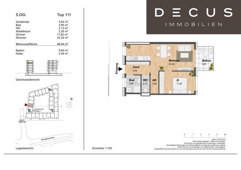 Top 111 befindet sich in der 5. Etage, ist östlich ausgerichtet und teilt sich wie folgt auf: