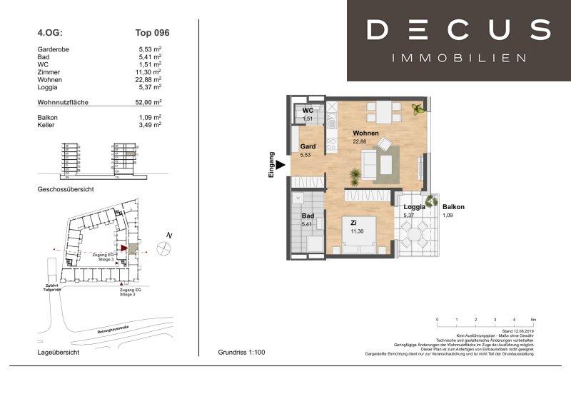 Top 96 befindet sich in der 4. Etage, ist östlich ausgerichtet und teilt sich wie folgt auf:
