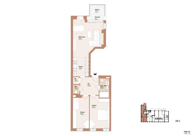 Das Objekt befindet sich im 3. OG des Straßenstraktes (Neubau) eines außergewöhnlich schönen Altbaus welcher soeben saniert wird. Das Dachgeschoss wird soeben ausgebaut und im Zuge dessen wird ein Personenaufzug eingebaut. Fertigstellung Ende Q4 2026.