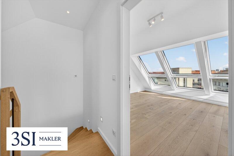 Exquisites Design und hochwertige Qualität definieren die Basisausstattung dieser repräsentativen Wohnung. Die Wohnung befindet sich im 1. und 2.Dachgeschoß, ist zur Straßenseite nach Nord-Osten ausgerichtet und auf der Hofseite nach Süd-Westen. Hier wohnen Sie luxuriös, grün und beeindruckend anders und haben viel Platz für Ihren persönlichen Lebensstil.