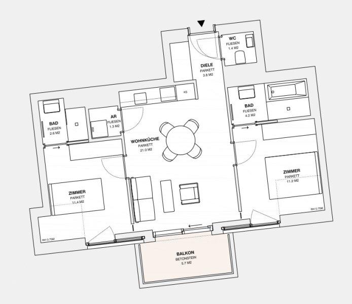 Fast jede Wohnung ist nicht nur mit einer Freifläche ausgestattet, sondern weißt auch hochwertige Materialien als auch Ausstattung aus: