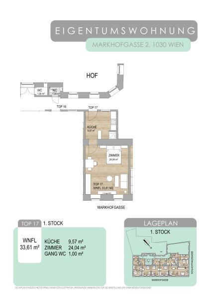 Das Objekt befindet sich in der Markhofgasse, im 3. Wiener Gemeindebezirk. Zahlreiche Geschäfte des täglichen Bedarfs befinden sich in Fußnähe und selbiges gilt für zahlreiche Restaurants und Cafés. So bietet sich zusammen mit der hervorragenden öffentlichen Verkehrsanbindung eine erstklassige Infrastruktur.