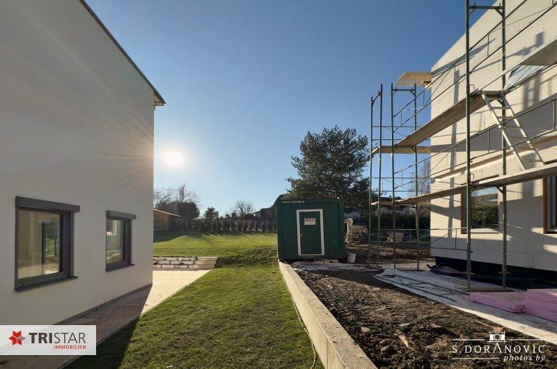 Weiters zählen zur hochwertigen Ausstattung: Eichenparkettböden, keramischer Belag/Feinsteinzeug, Garten mit Rollrasen, etc.