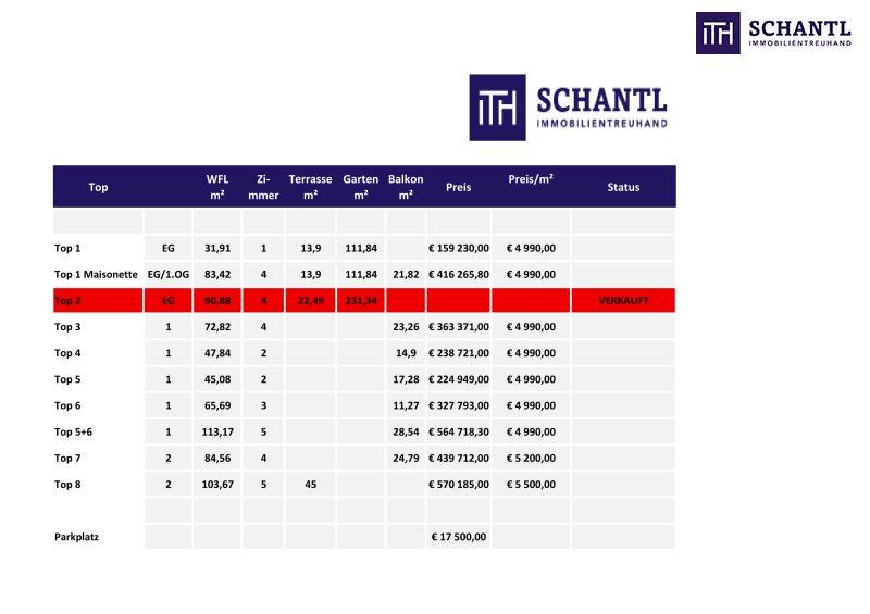 • KP der Top 5 brutto € 214.900,00 BELAGSFERTIG, OHNE, Innentüren, Parkett, Fliesen, Mal/Spachtelarbeiten, Sanitärgegenstände/Armaturen/Duschwand (der Nettopreis beträgt - 9%)